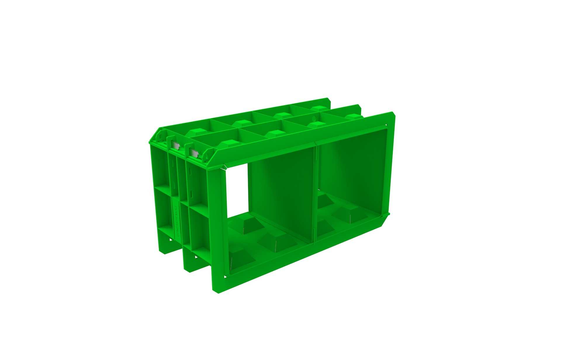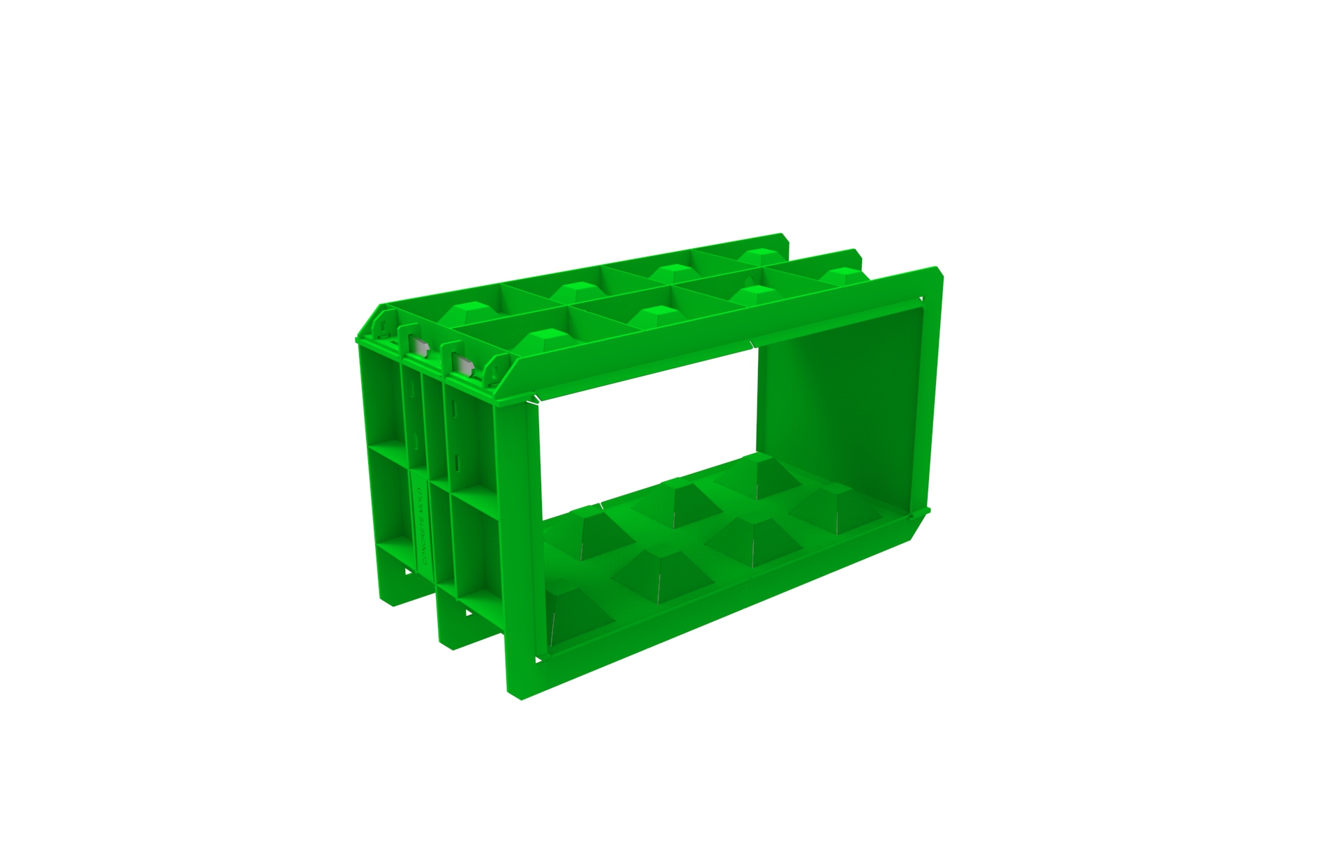 Forma do bloków betonowych F-120/60/60 produkowana ze stali konstrukcyjnej. Zaprojektowana do odlewania betonowych bloków, otwierana za pomocą klucza.