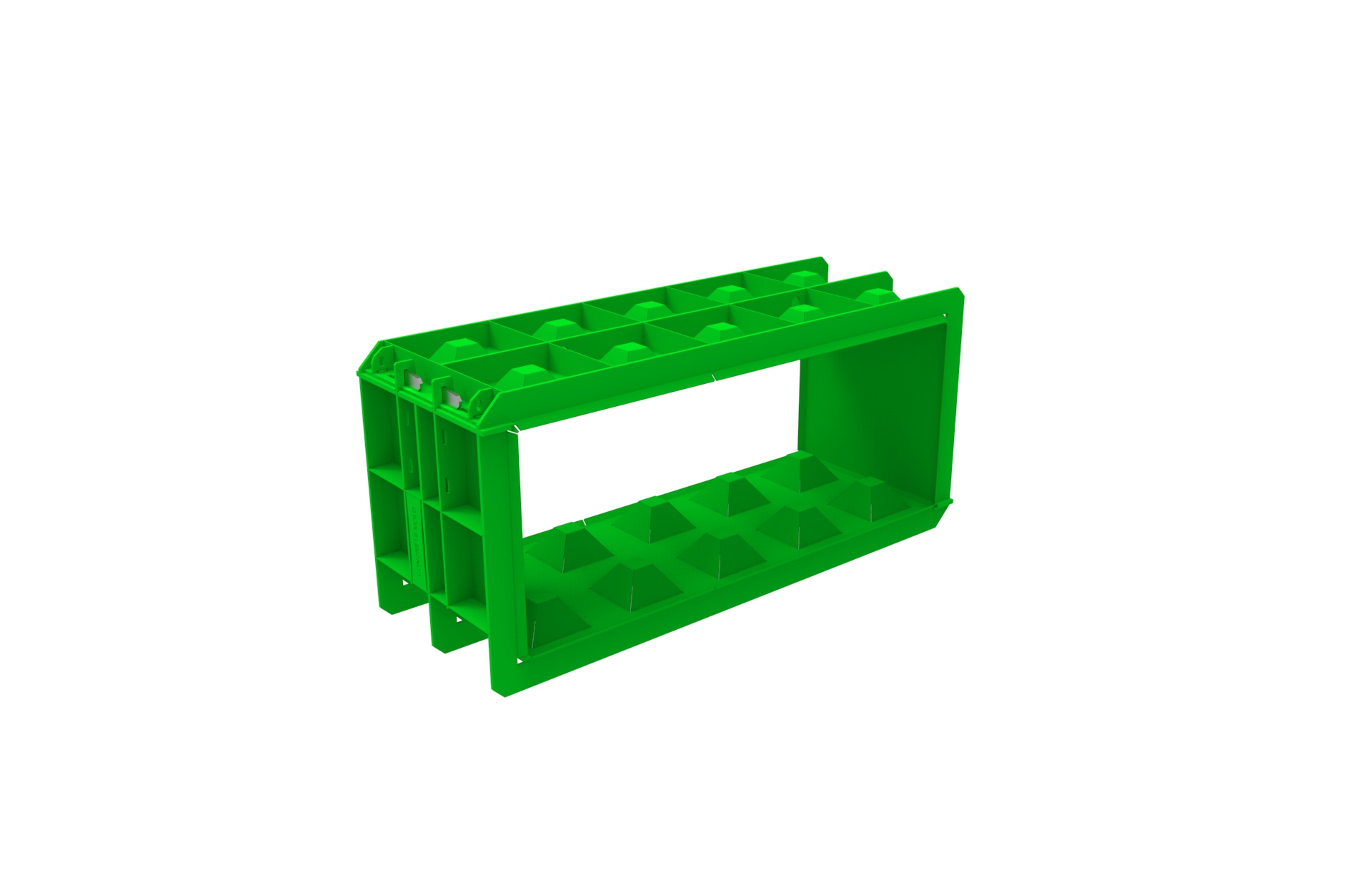 Forma do bloków betonowych F-150/60/60 produkowana ze stali konstrukcyjnej. Zaprojektowana do odlewania betonowych bloków, otwierana za pomocą klucza.