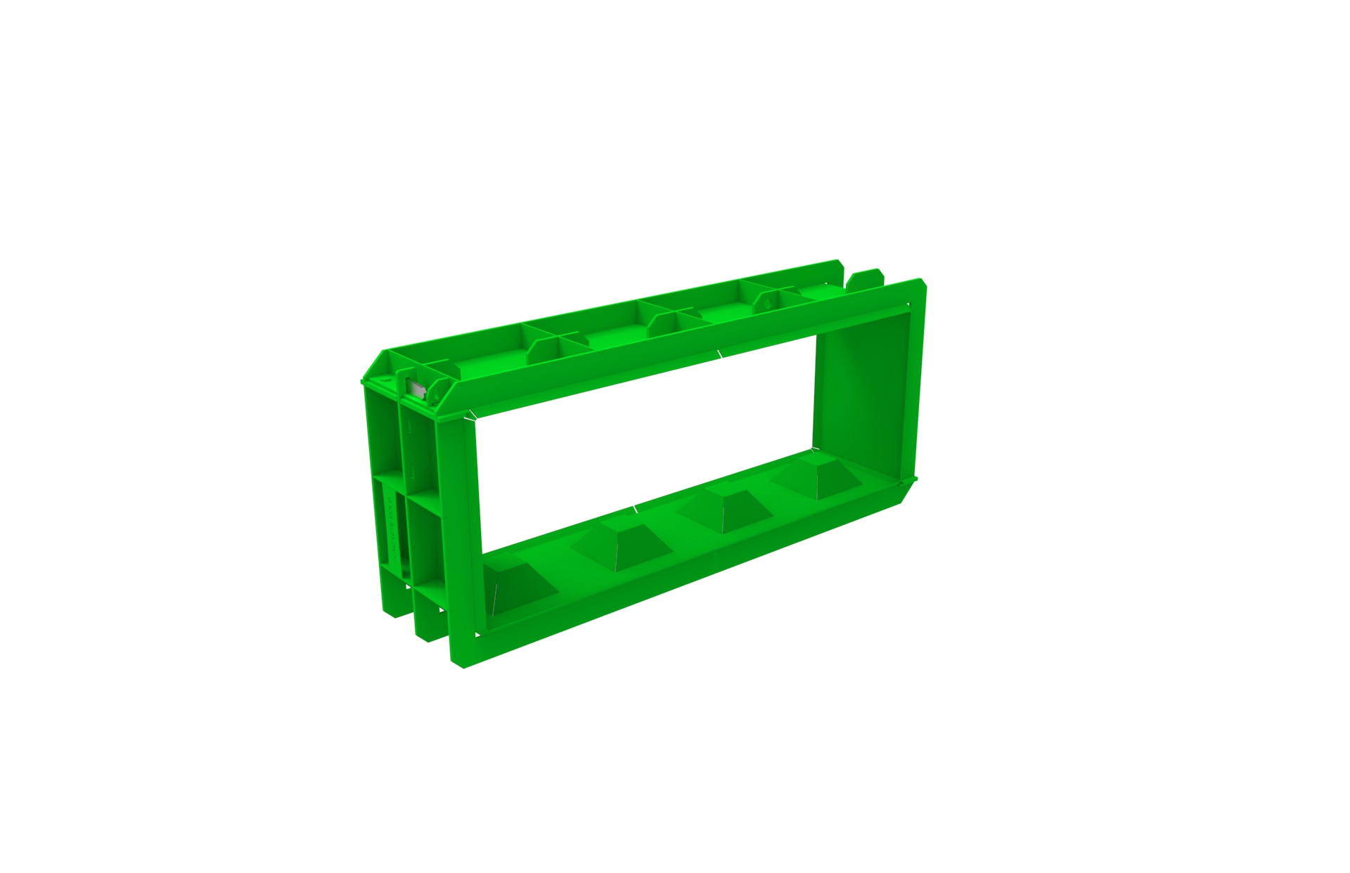Forma do bloków betonowych płaskich F-160/40/60 P produkowana ze stali konstrukcyjnej. Zaprojektowana do odlewania betonowych bloków, otwierana za pomocą klucza.