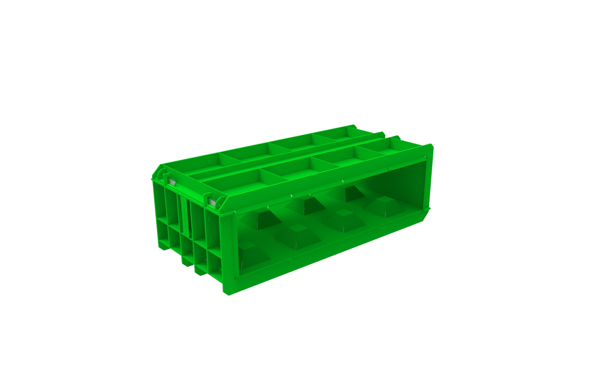 Forma do bloków betonowych płaskich F-160/80/40 P produkowana ze stali konstrukcyjnej. Zaprojektowana do odlewania betonowych bloków, otwierana za pomocą klucza.