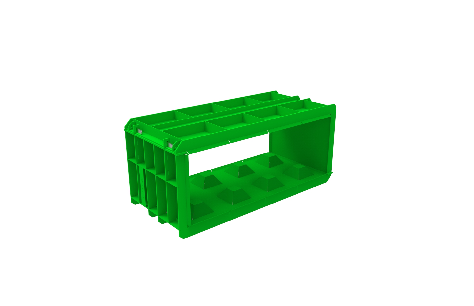 Forma do bloków betonowych F-160/80/60 P produkowana ze stali konstrukcyjnej. Zaprojektowana do odlewania betonowych bloków, otwierana za pomocą klucza.