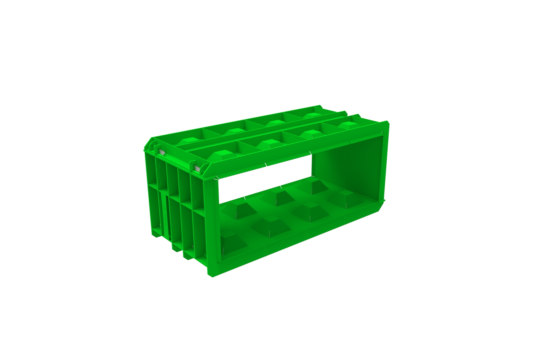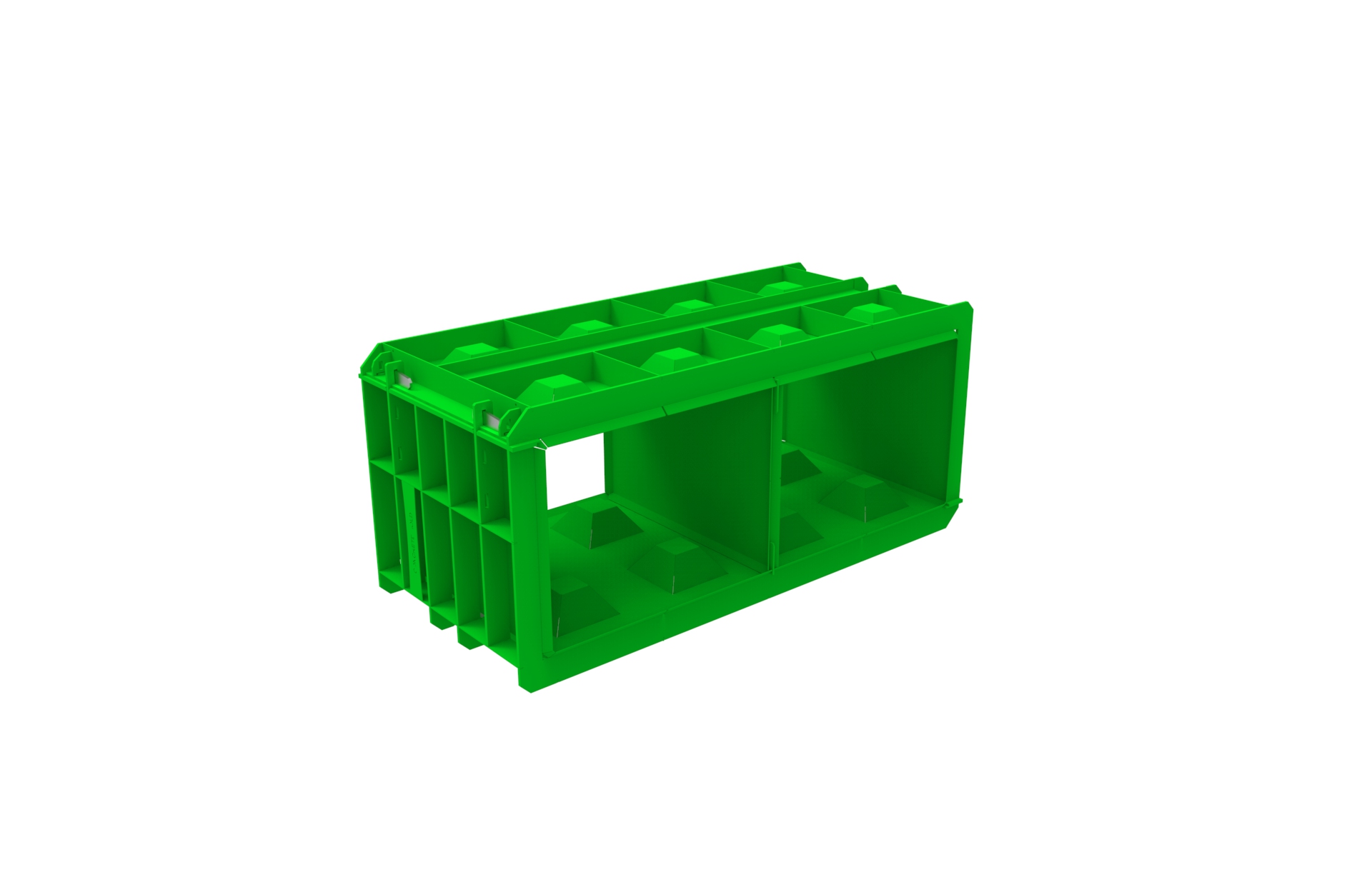 Forma do bloków betonowych F-160/80/60 produkowana ze stali konstrukcyjnej. Zaprojektowana do odlewania betonowych bloków, otwierana za pomocą klucza.