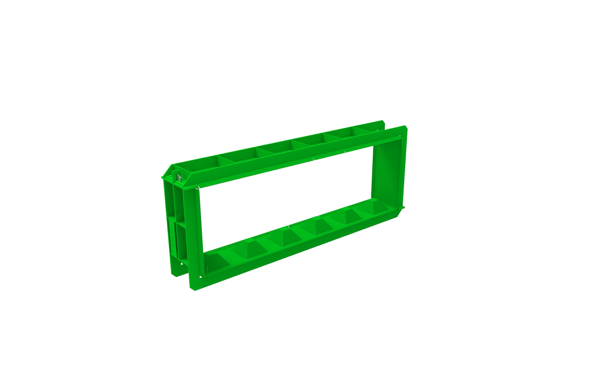 Forma do bloków betonowych płaskich F-180/30/60 P produkowana ze stali konstrukcyjnej. Zaprojektowana do odlewania betonowych bloków, otwierana za pomocą klucza.