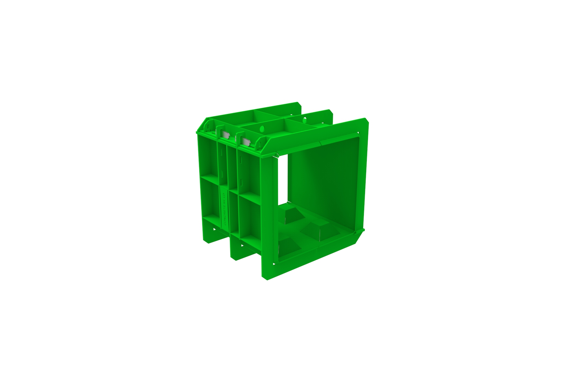 Forma do bloków betonowych płaskich F-60/60/60 P produkowana ze stali konstrukcyjnej. Zaprojektowana do odlewania betonowych bloków, otwierana za pomocą klucza.