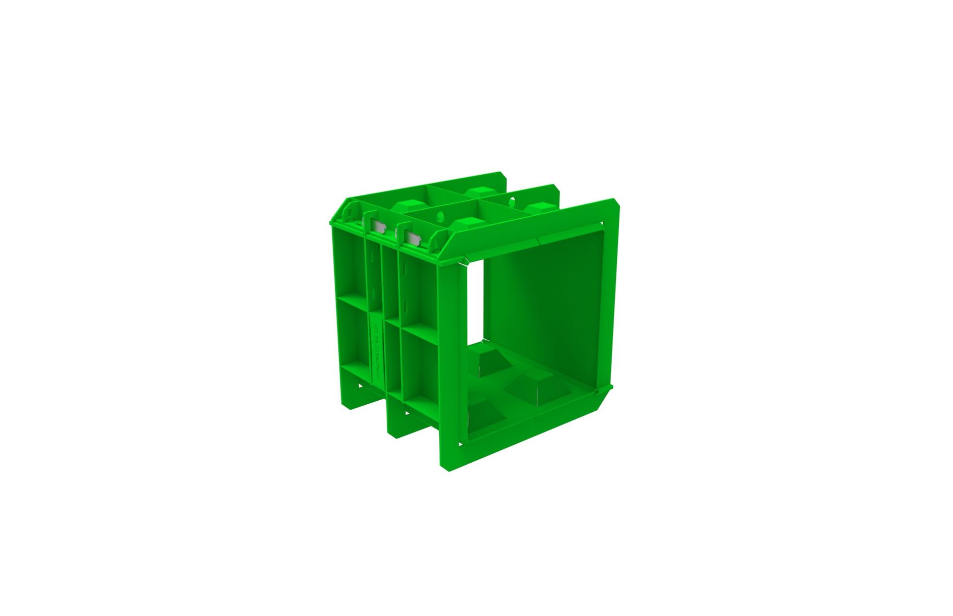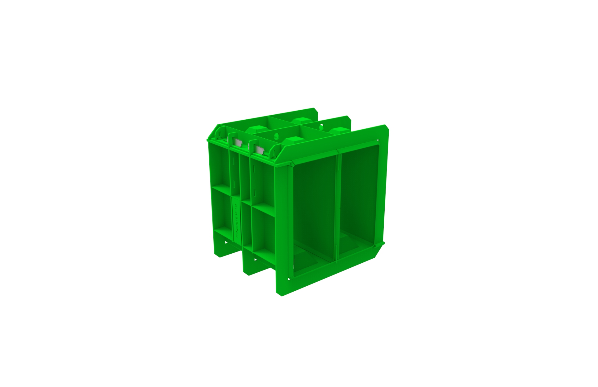 Forma do bloków betonowych F-60/60/60 produkowana ze stali konstrukcyjnej. Zaprojektowana do odlewania betonowych bloków, otwierana za pomocą klucza.