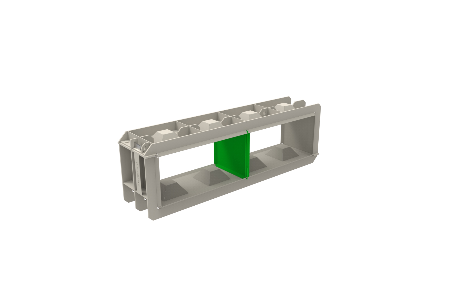 Przegroda formy do bloków betonowych P-40×40 dedykowana do rodziny form F-160/40/40, umożliwia wykonanie kilku mniejszych bloków ze standardowej formy.