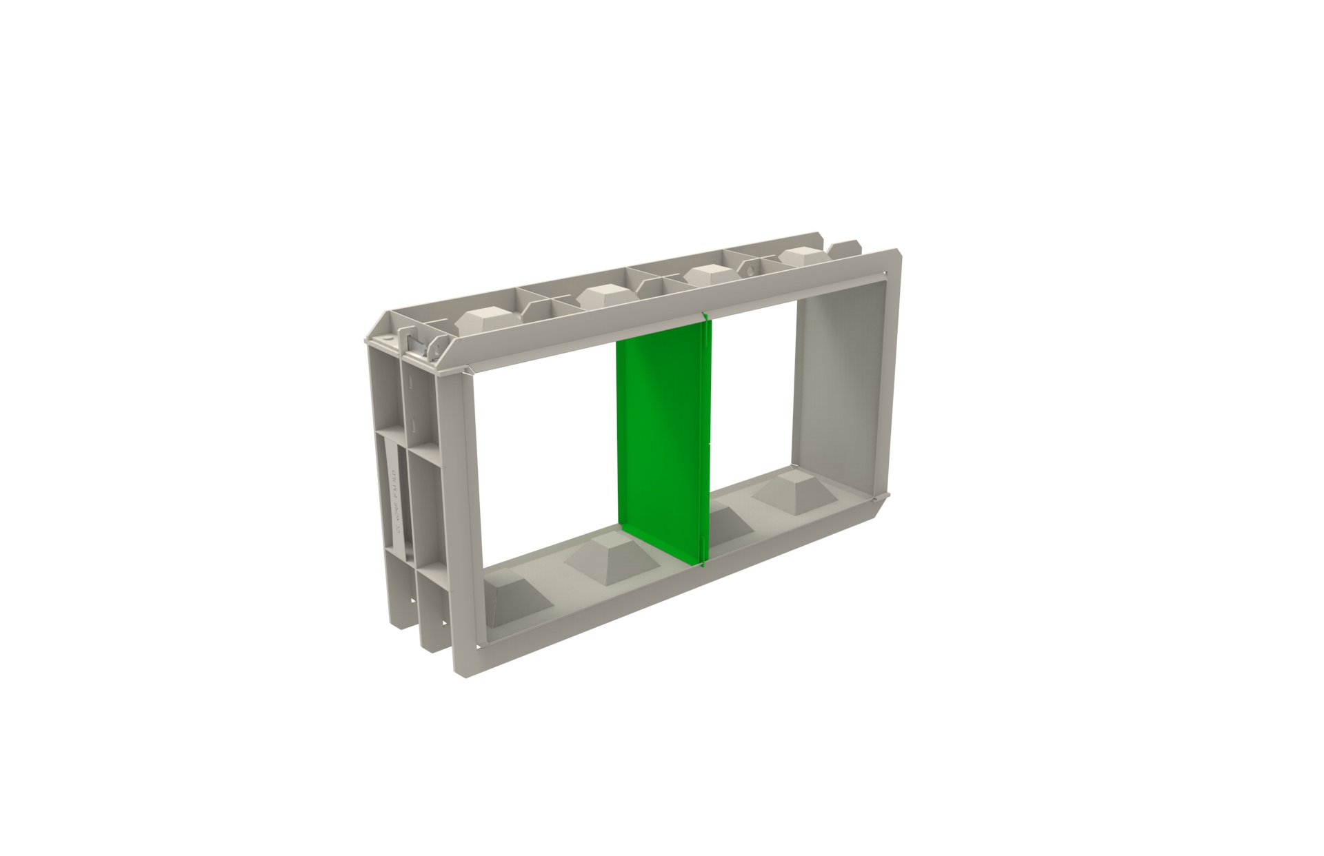 Przegroda formy do bloków betonowych P-40×80 dedykowana do rodziny form F-160/40/80, umożliwia wykonanie kilku mniejszych bloków ze standardowej formy.