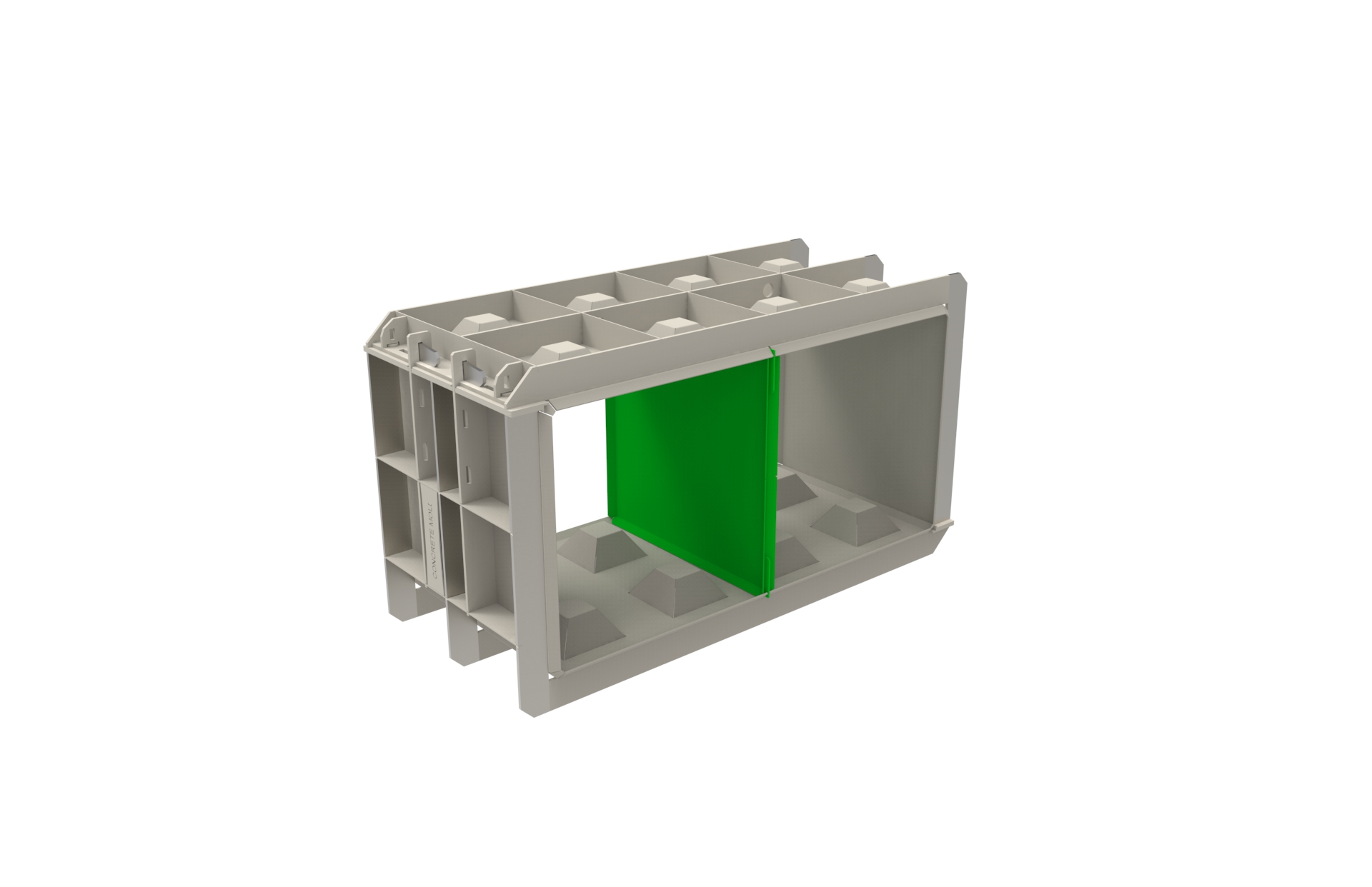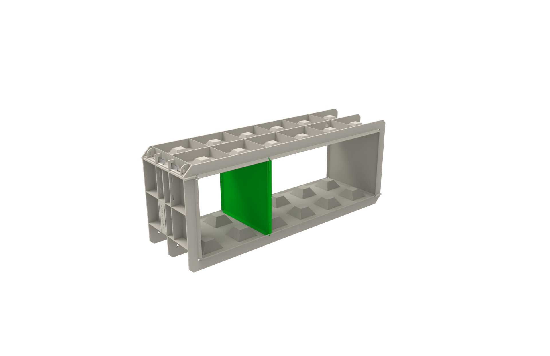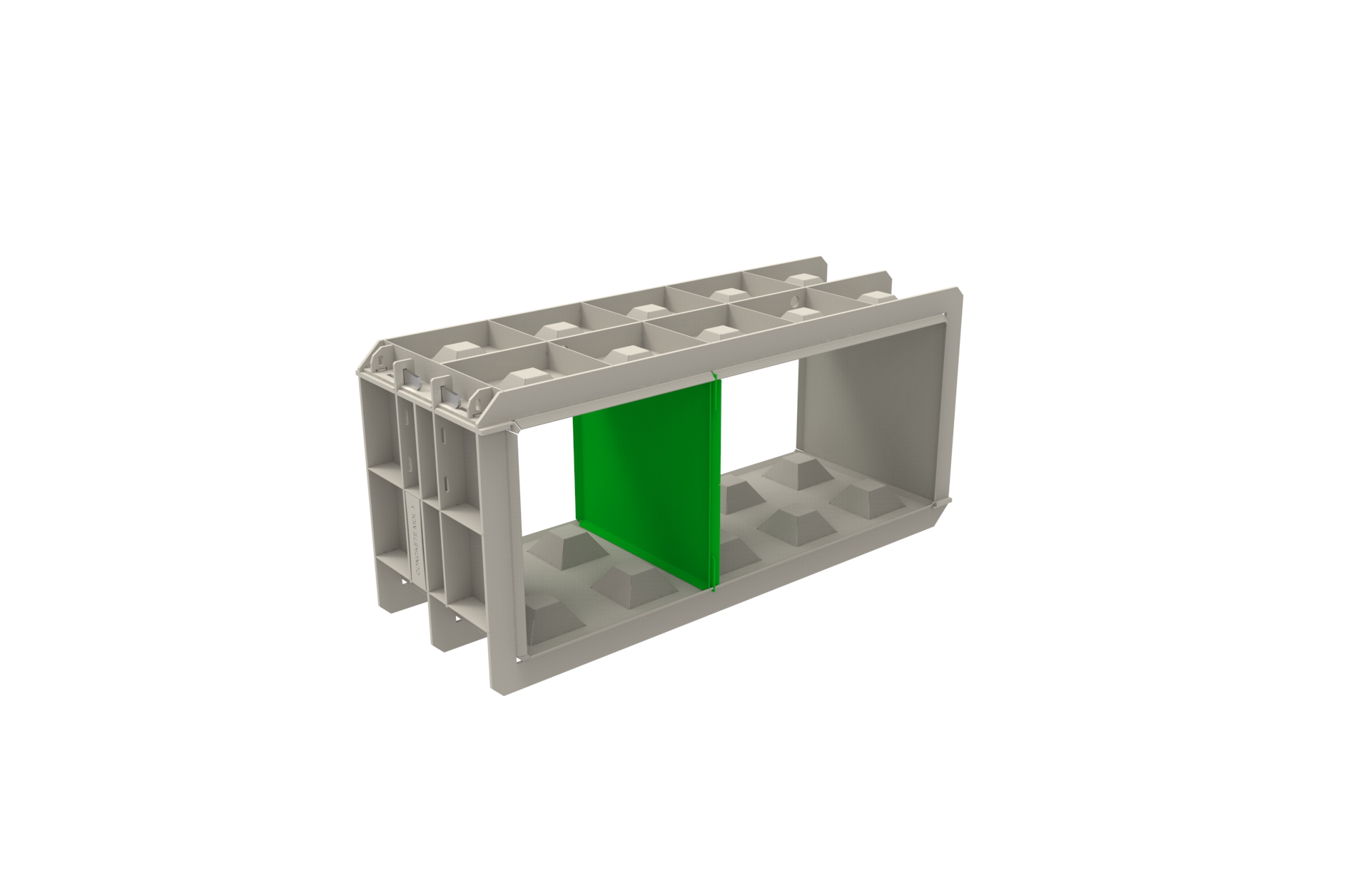 Przegroda formy do bloków betonowych P-60×60 dedykowana do rodziny form F-180/60/60, umożliwia wykonanie kilku mniejszych bloków ze standardowej formy.