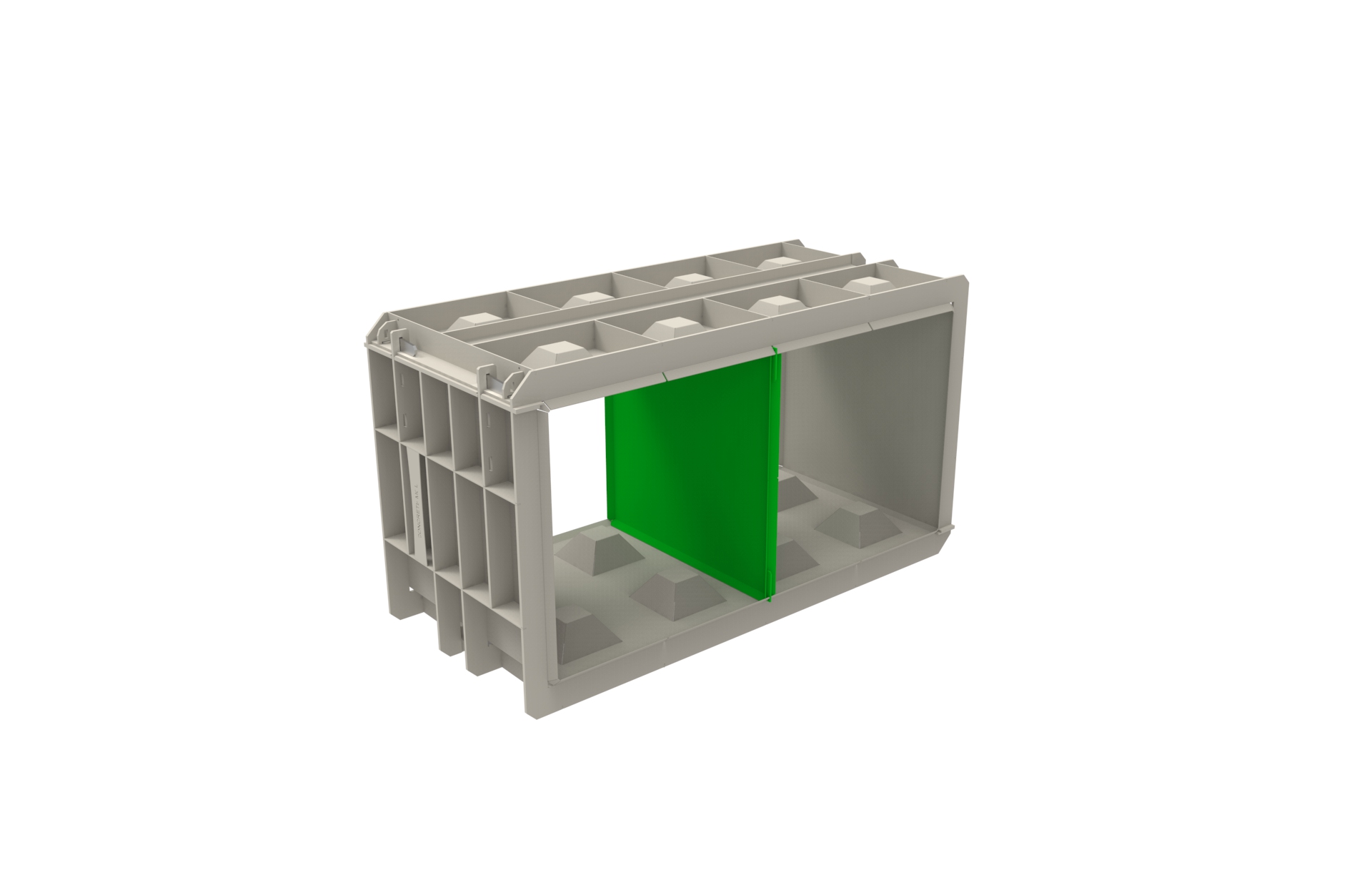 Przegroda formy do bloków betonowych P-80×80 dedykowana do rodziny form F-160/80/80, umożliwia wykonanie kilku mniejszych bloków ze standardowej formy.